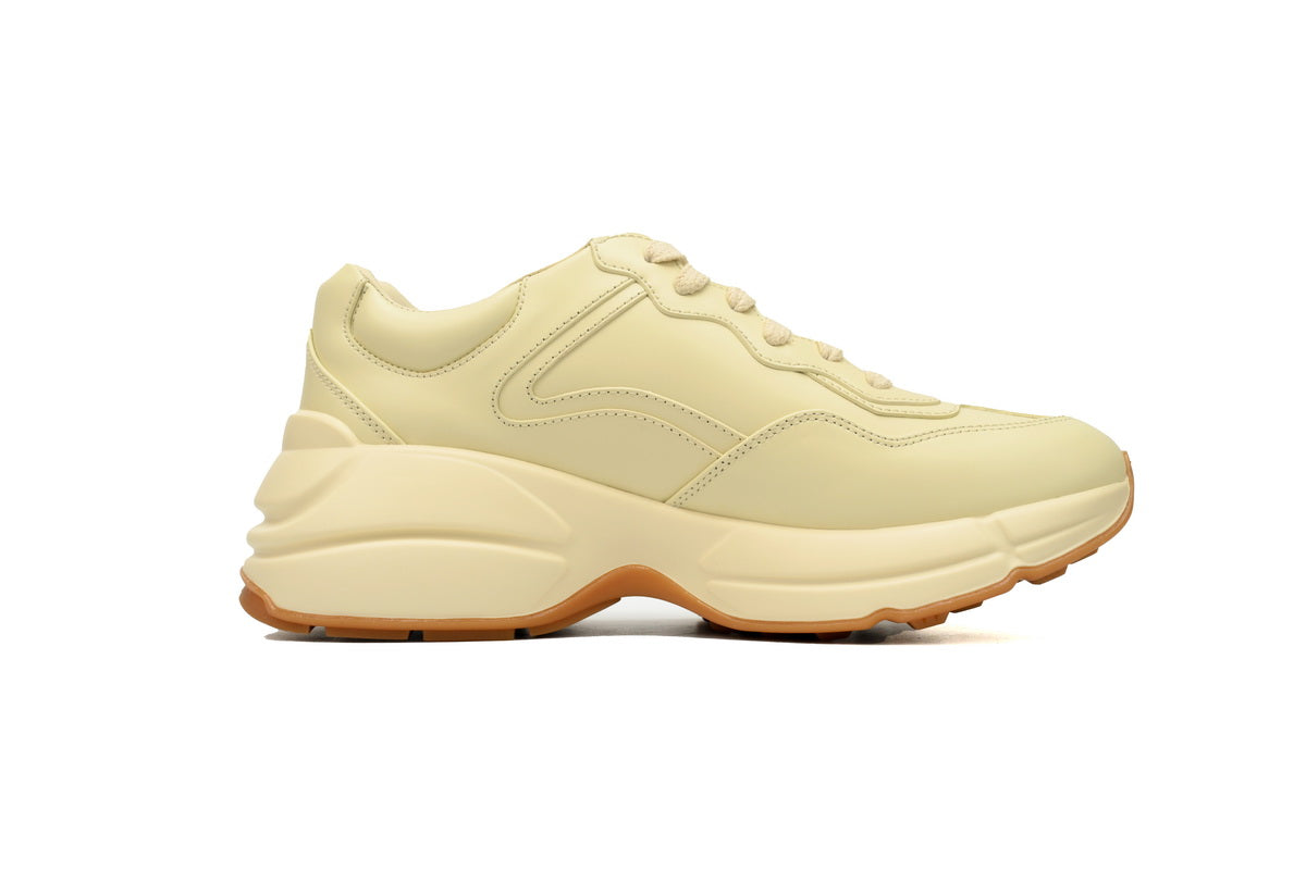 Mickey Mouse’s playful image defines the chunky-soled design of the men’s Rhyton sneaker in ivory leather. In celebration of the Lunar New Year, Disney’s legendary character appears throughout Gucci’s ready-to-wear and accessories for the Cruise 2020 collection, displayed as colorful prints, embroidered patches or jacquard motifs.