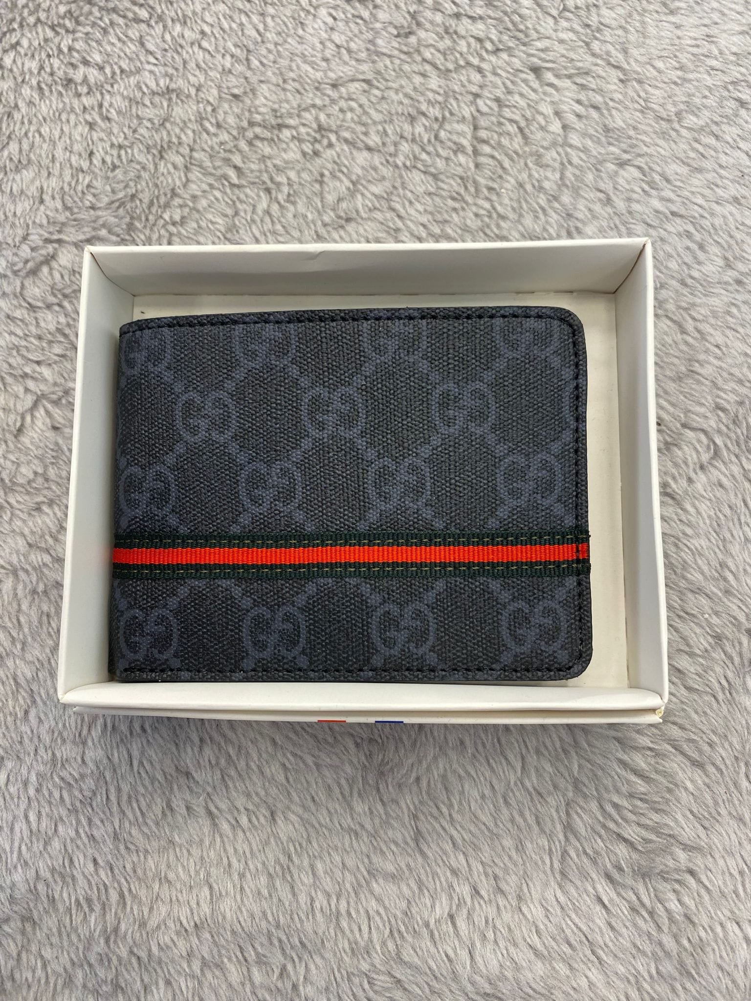 Gucci Leather Bifold Men Wallet Striped Grey