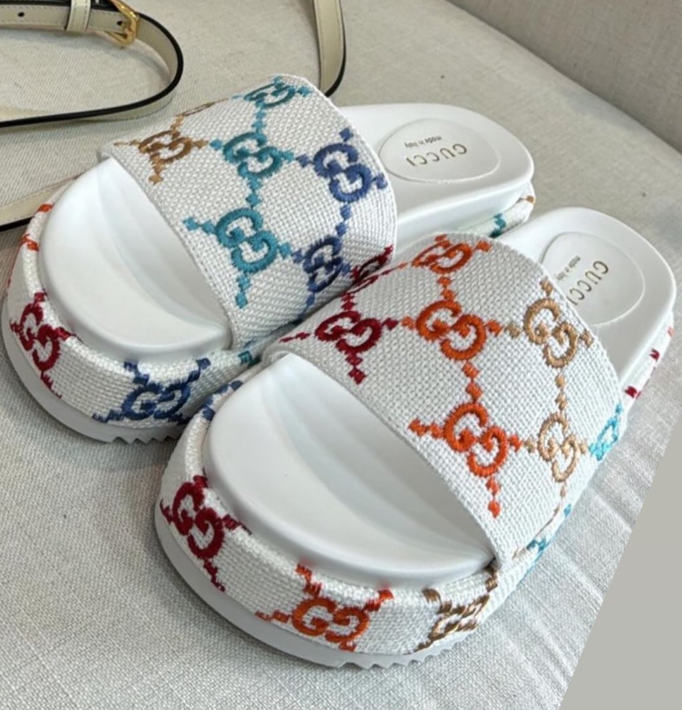 Step out to the infinity pool in style with these striking Platform Slide Sandals from Gucci. Part of the house's Lido resortwear collection, these sandals for women will cause a stir wherever you go. But they are not just for lounging by a swimming pool, wear these to explore picturesque coastal towns or walk on pristine sandy beaches.