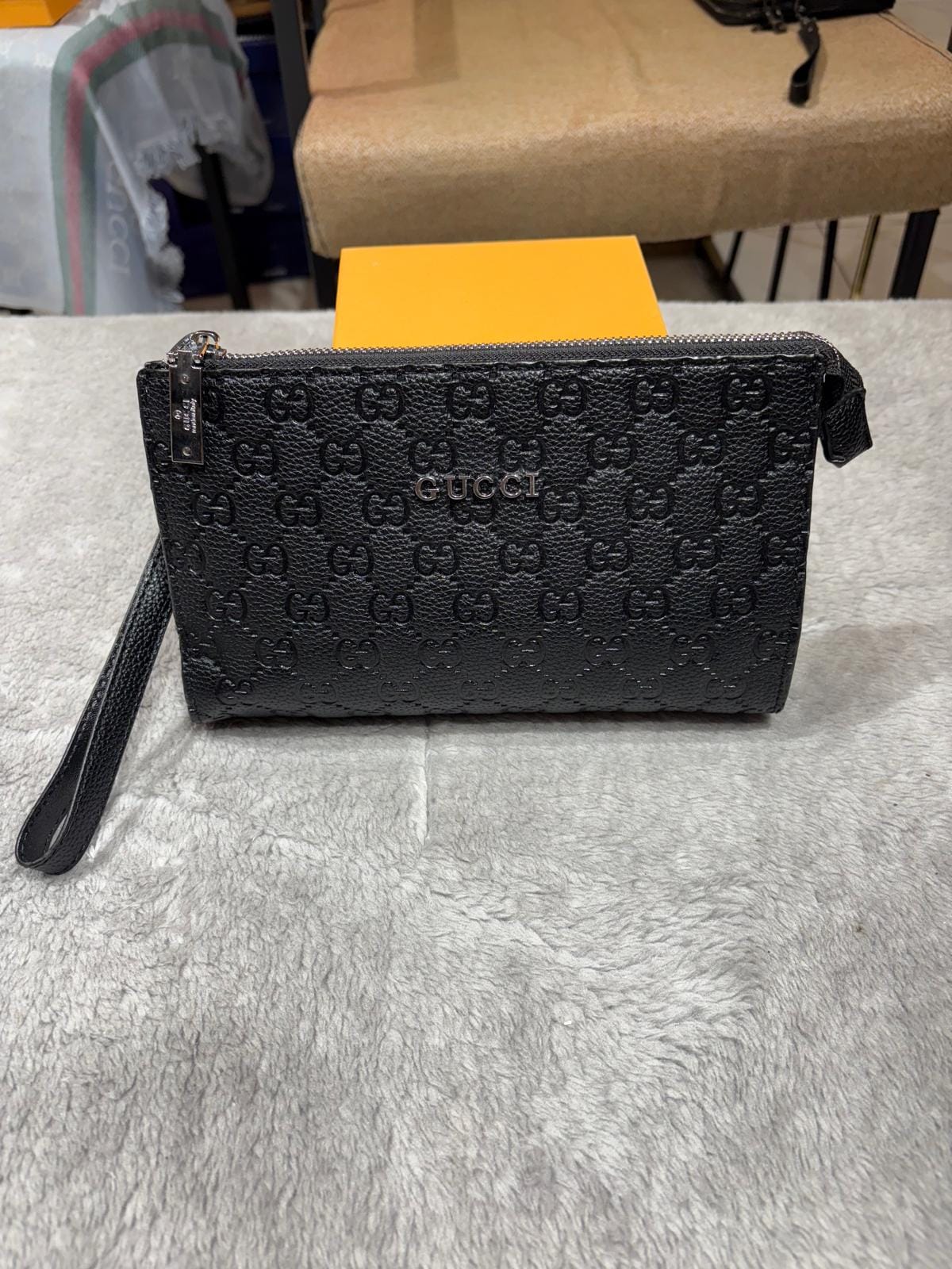Revitalizing everyday small accessories with a modern-day interpretation, a selection of men's pouches appear in a black rubber-effect leather. The new material for Cruise 2024 lends a contemporary feel to the essential item, featuring a wrist strap handle